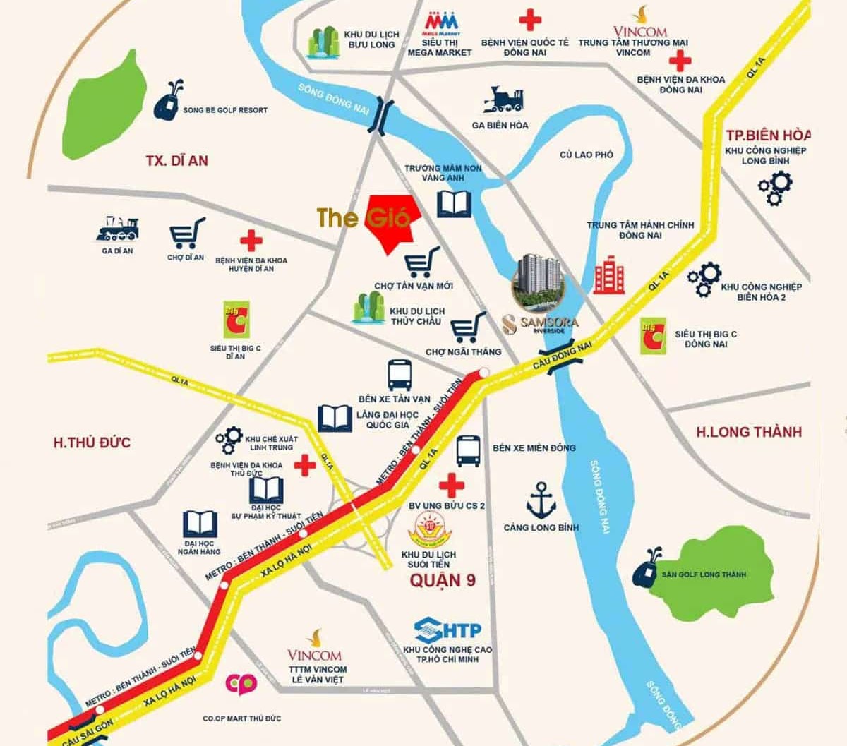 Vị trí dự án The Gió Riverside sở hữu địa thế vô cùng đắc giá “hiếm có khó tìm” khi hội tụ đầy đủ các tiêu chuẩn của một BĐS chất lượng khi sở hữu địa thế “Nhất cận thị – Nhị cận giang – Tam cận lộ”. The Gió tọa lạc tại vị trí ngã ba sông Đồng Nai và sông Ngọc, dự án The Gió Riverside thừa hưởng lợi thế giao thông khi liền kề trục xa lộ Hà Nội và các tuyến đường huyết mạch như quốc lộ 1A, nút giao thông Tân Vạn, Vành đai 3, tuyến metro số 1, metro Suối Tiên – Biên Hoà. ..